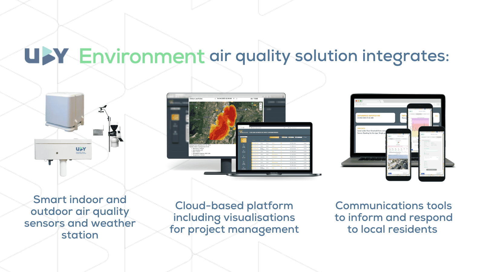 UBY Com combines seamlessly with UBY Environment to help support positive relationships with the community. By providing notice about upcoming disturbances, project teams can engage with the local community and receive feedback from local residents via the same platform. Community reports and sensor data feed into the same real-time database supporting teams to resolve issues fast. The two way communication can be managed through the app, email or SMS, the package also integrates with your own website and social channels. It is customizable, meaning each project can configure which internal and external partners receive what communications.