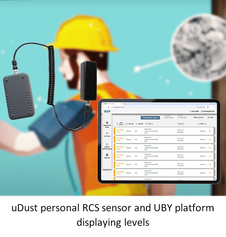 UBY’s detector for silica and other airborne particles, uDust, is a lightweight, wearable solution that sends data in real-time from every sensor to our networked platform.